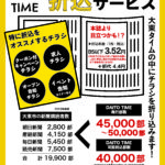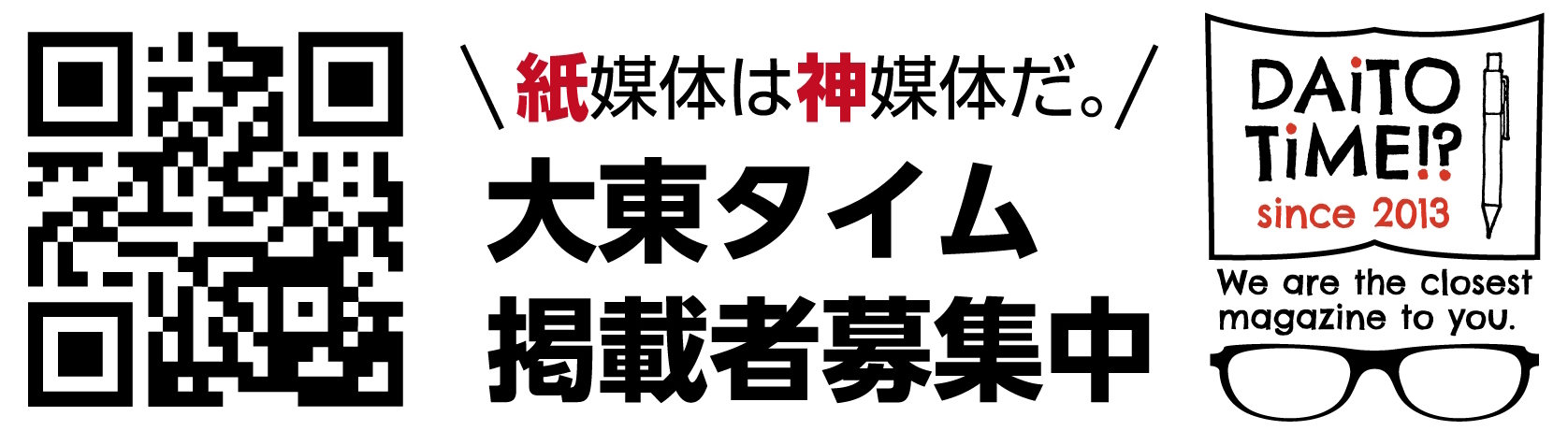 - DAITOTIMEチラシ折込オプションDAITOTIMEにチラシを折込めば、最大4万部にチラシを入れることができます! 折り込むメリット お問い合わせ DAITOTIME編集部までお気軽のお問い合わせください。 TEL:070-9113-2662
