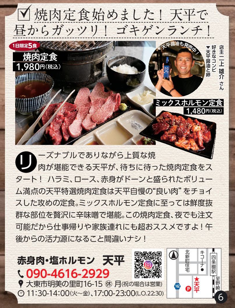 リーズナブルでありながら上質な焼肉が楽しめる「天平」が、待望の焼肉定食をスタートしました!