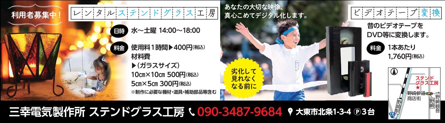 大東市北条にある三幸電気製作所 ステンドグラス工房では、レンタル工房を開放中。