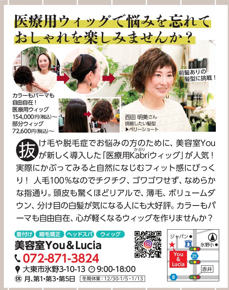 美容室Youが導入した医療用Kかぶりabriウィッグが好評です。