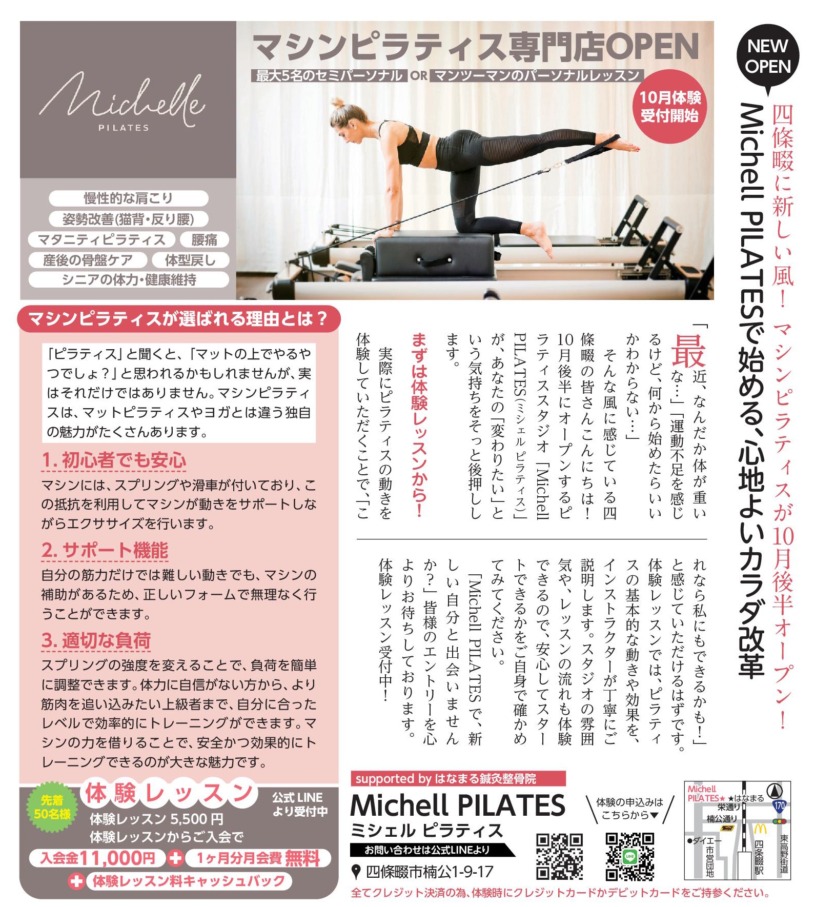 【Michell PILATES】10月後半、四條畷にNEW OPEN!